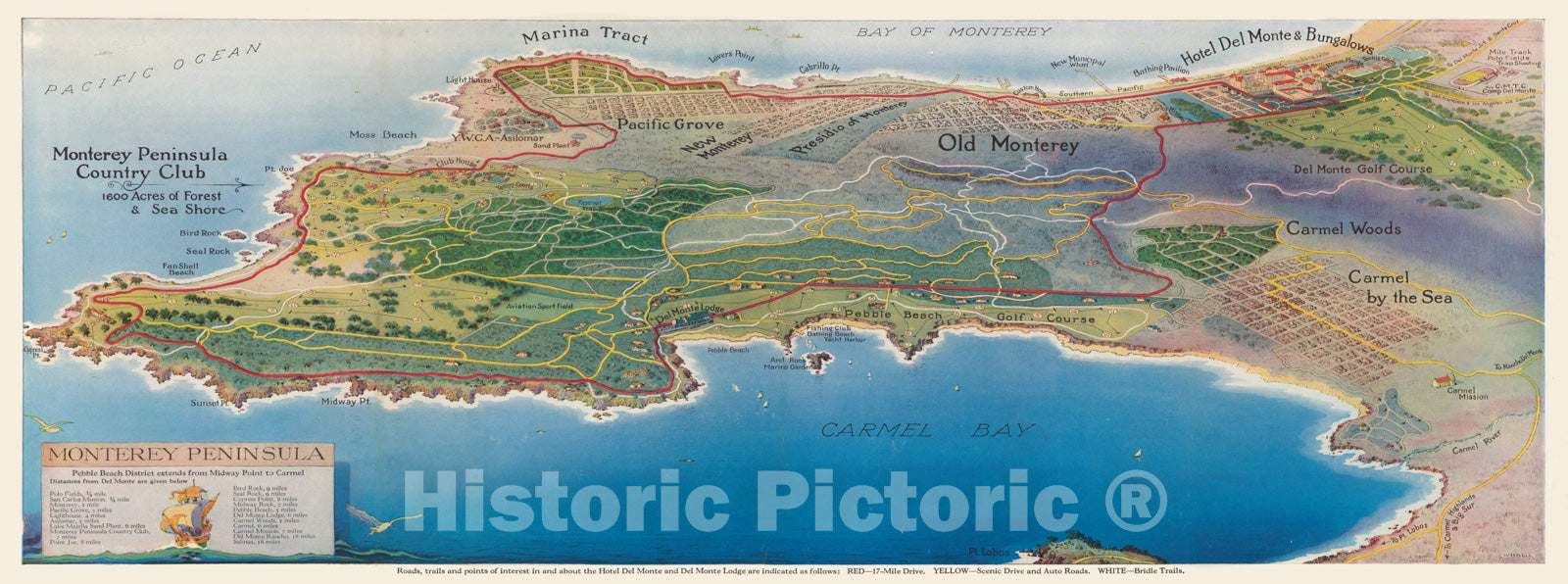 Historic Map : Monterey Peninsula Country Club : 1600 acres of forest & sea shore, 1928, Vintage Wall Art