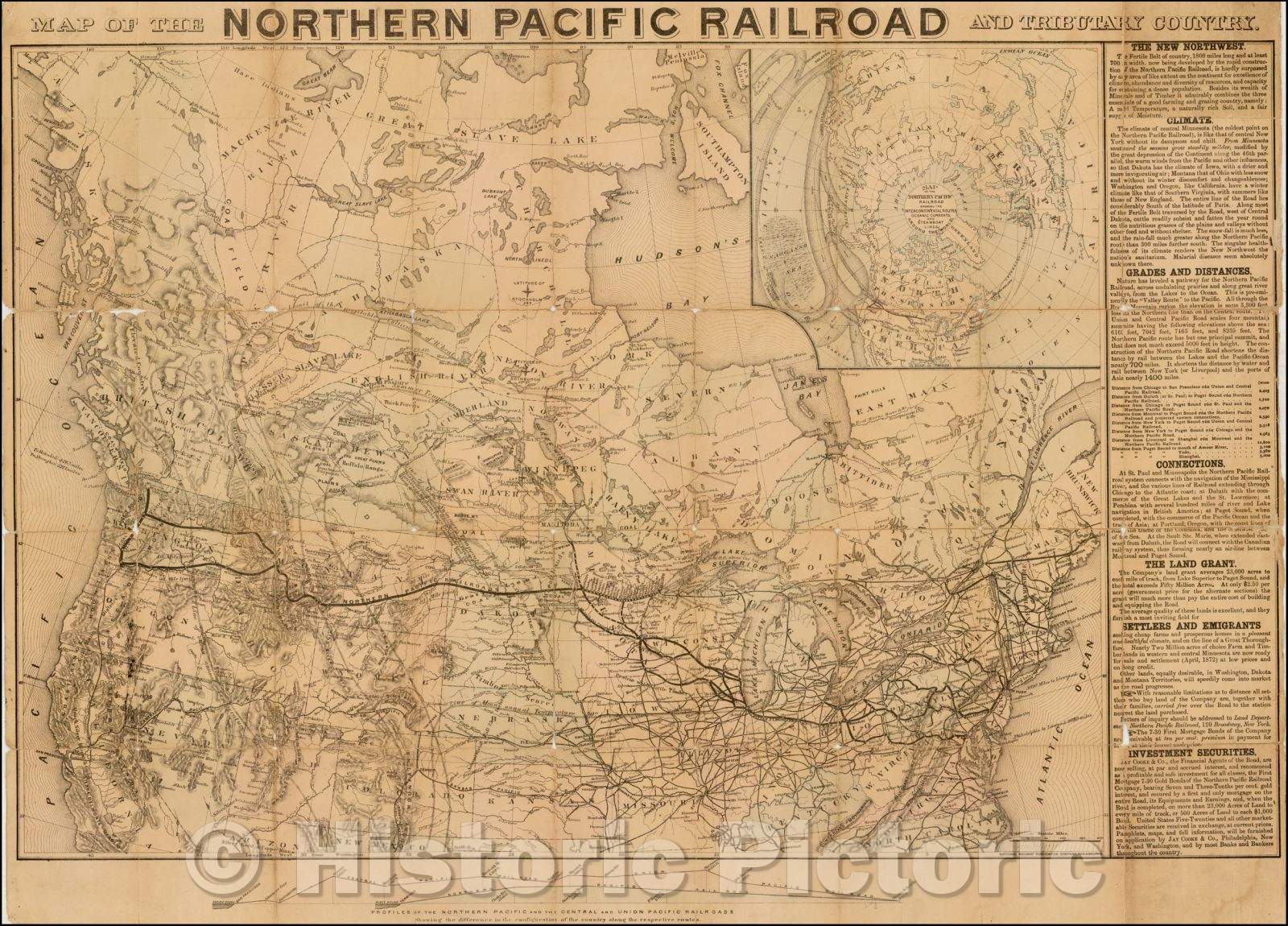 Historic Map - Map of The Northern Pacific Railroad and Tributary Country, 1872, National Railway Publication Company - Vintage Wall Art
