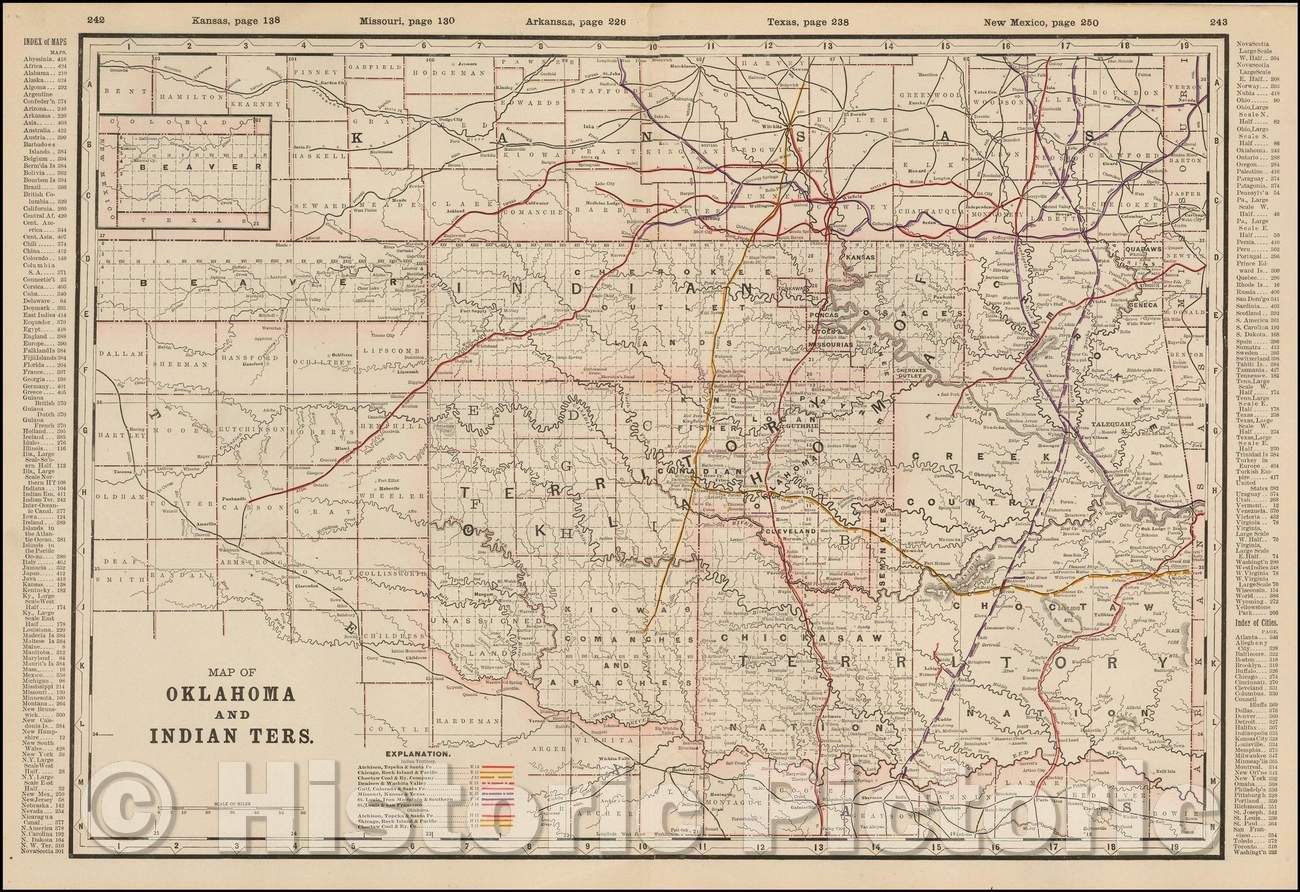 Historic Map - Map of the Oklahoma Country in the Indian Territory, 1892, George F. Cram - Vintage Wall Art