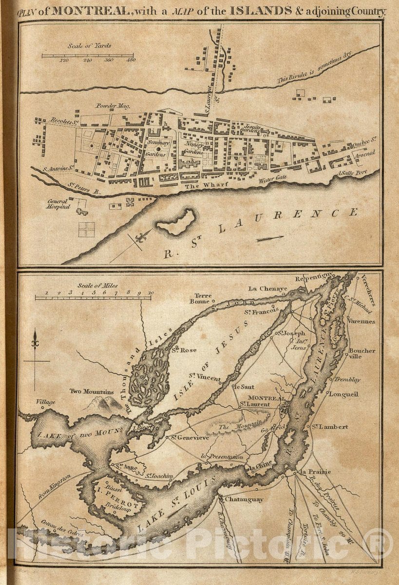 Historic Map : Plan of Montreal, with a Map of the Islands & adjoining Country., 1815, Vintage Wall Decor
