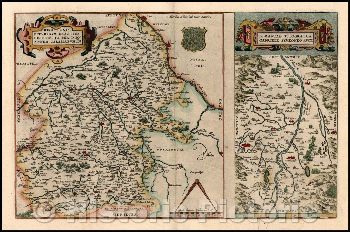 • .Historic Map - Regionis Biturigum Exactiss: Descriptio Per D. Ioannem Calamaeum [with] :: The country marches Exactiss: Description, 1587 - Vintage Wall Art