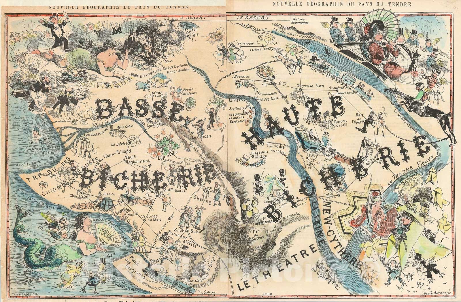 Historic Map : Sahib Pictorial Map of Provinces of Prostitution in The Country of Love, 1881, Vintage Wall Art