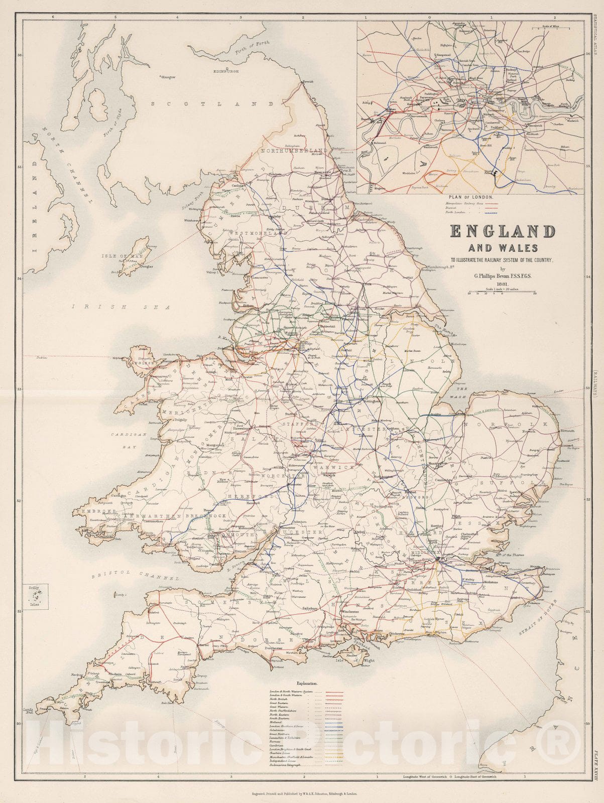 • Historic Map : Statistical Atlas - 1881 England and Wales to Illustrate the Railway System of the Country. - Vintage Wall Art