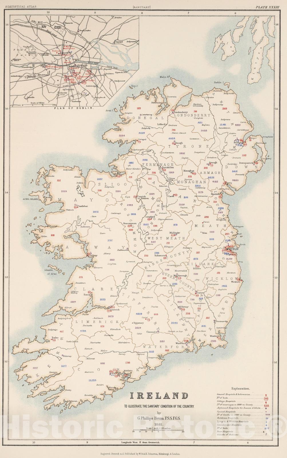 Historic Map : Statistical Atlas - 1881 Ireland to Illustrate the Sanitary Condition of the Country. - Vintage Wall Art