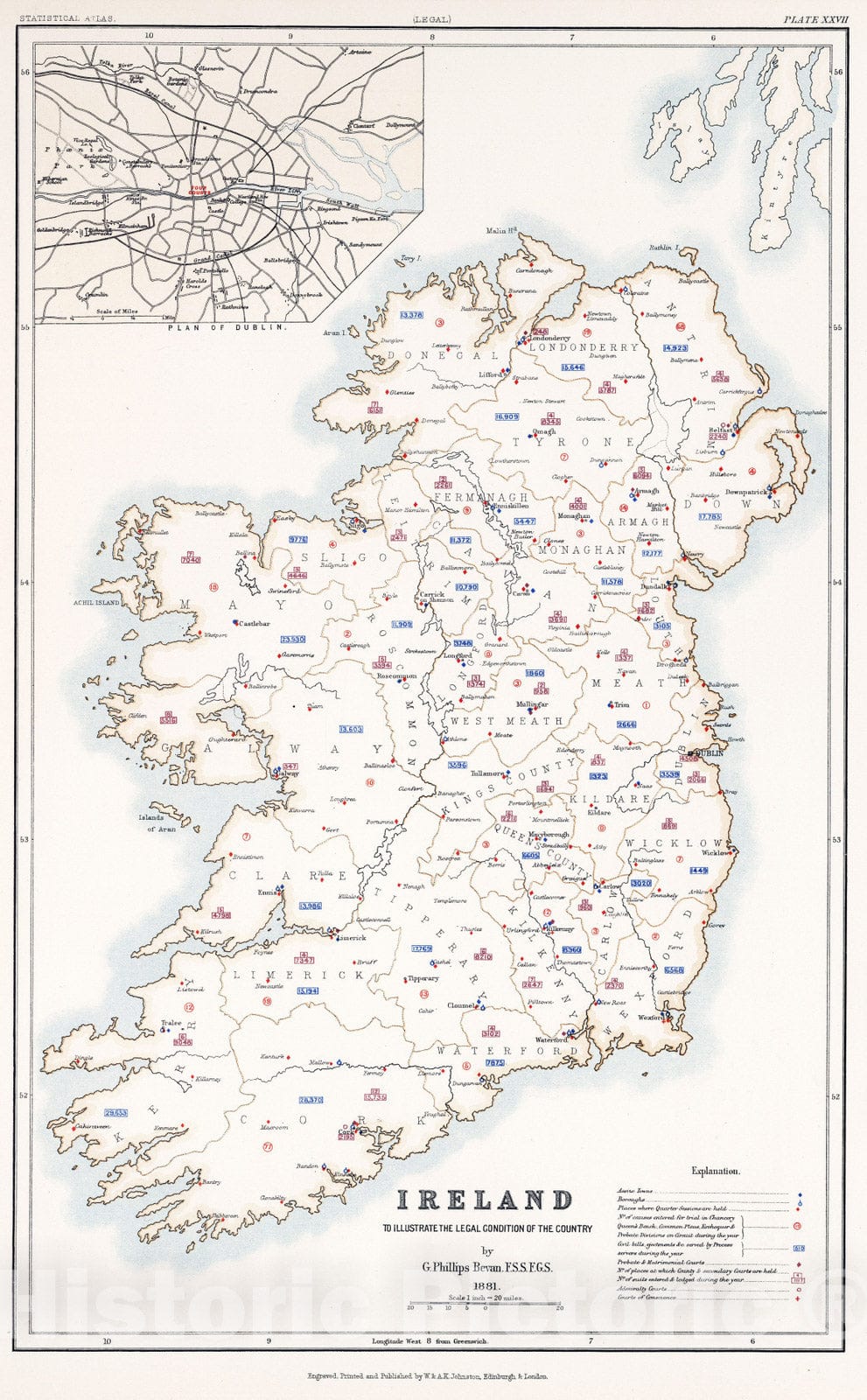 Historic Map : Statistical Atlas - 1881 Ireland to Illustrate the Legal Condition of the Country. - Vintage Wall Art