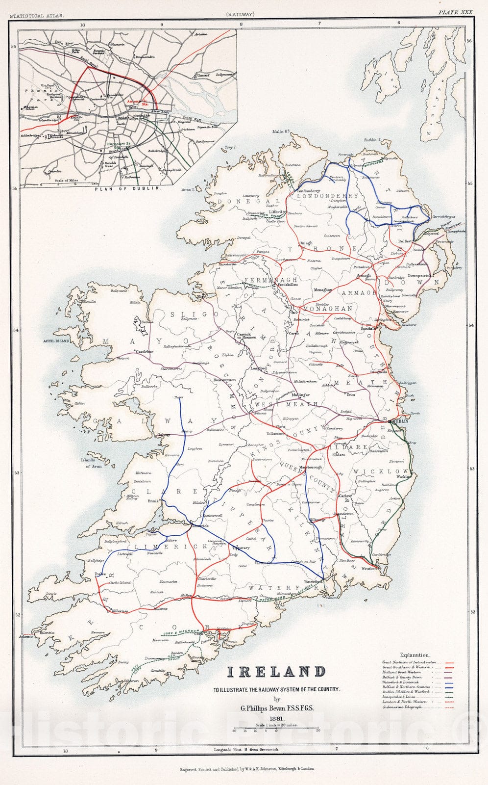 Historic Map : Statistical Atlas - 1881 Ireland to Illustrate the Railway System of the Country. - Vintage Wall Art