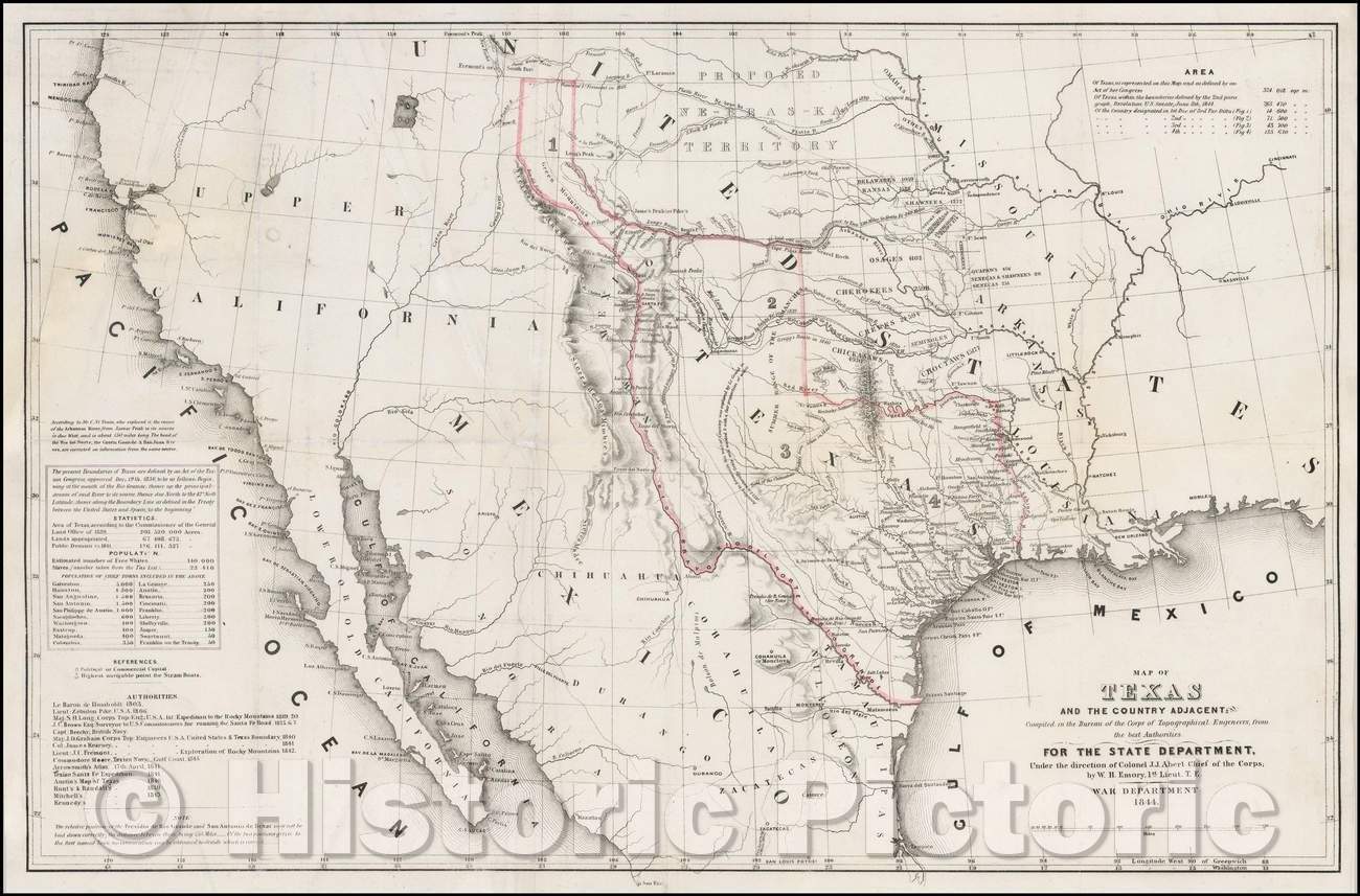 Map of Texas and the Country Adjacent, compiled in the Bureau of the Corps of Topographical Engineers, 1844, William Hemsley Emory