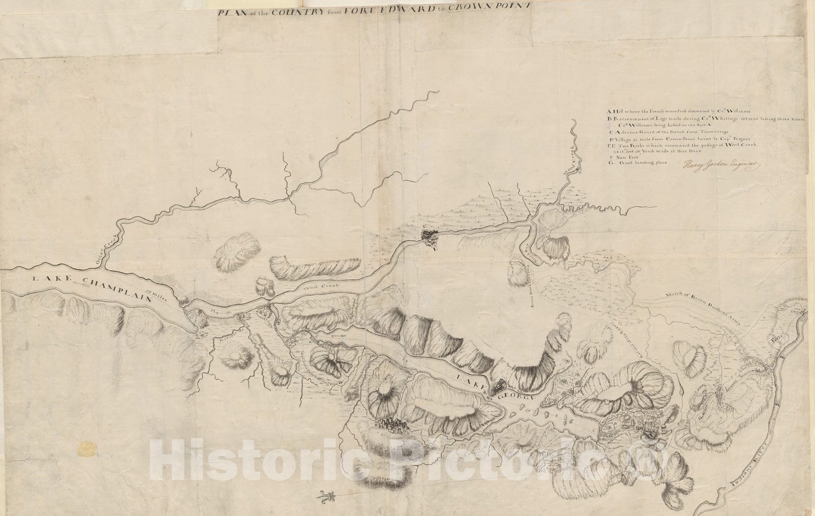 • .Historical Map, 1756-1759 Plan of The Country from Fort Edward to Crown Point, Vintage Wall Art