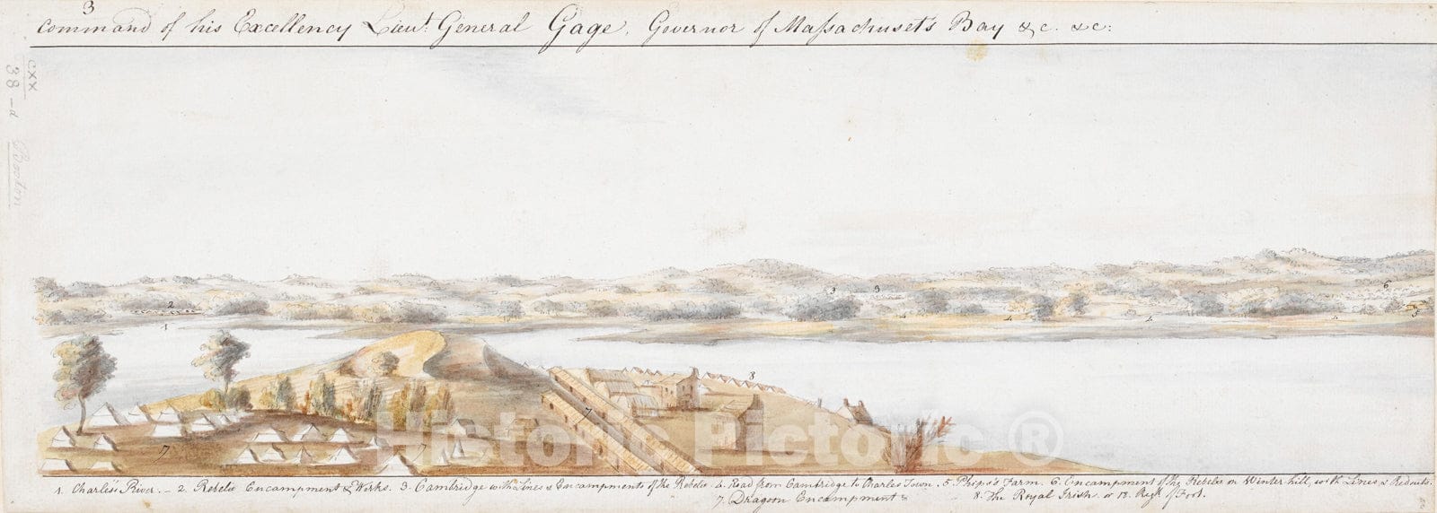 Historical Map, 1775 [View of the country round Boston taken from Beacon hill], Vintage Wall Art
