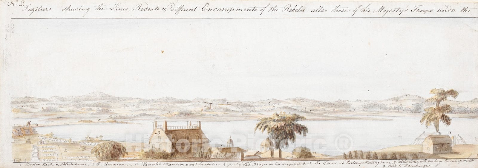 Historical Map, 1775 [View of The Country Round Boston Taken from Beacon Hill], Vintage Wall Art