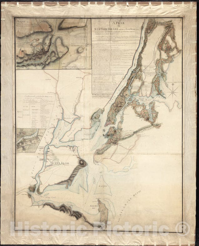 • Historical Map, 1777 A Plan of New York Island, and Part of Long Island, with The circumjacent Country, as far as Dobbs's Ferry to The North, and White Plains, Vintage Wall Art
