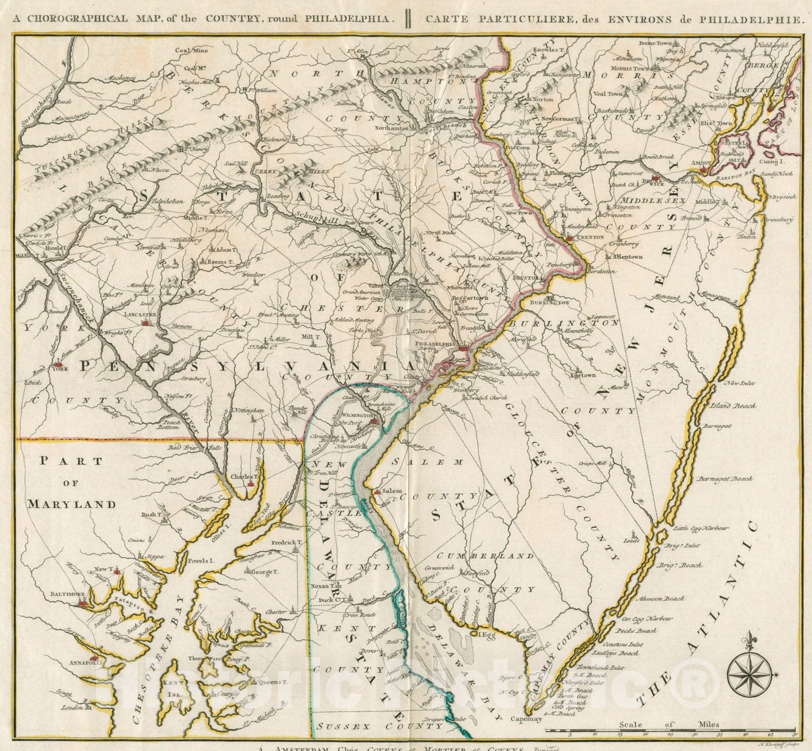 A chorographical map, of the country, round Philadelphia = : carte particuliere, des environs de Philadelphie