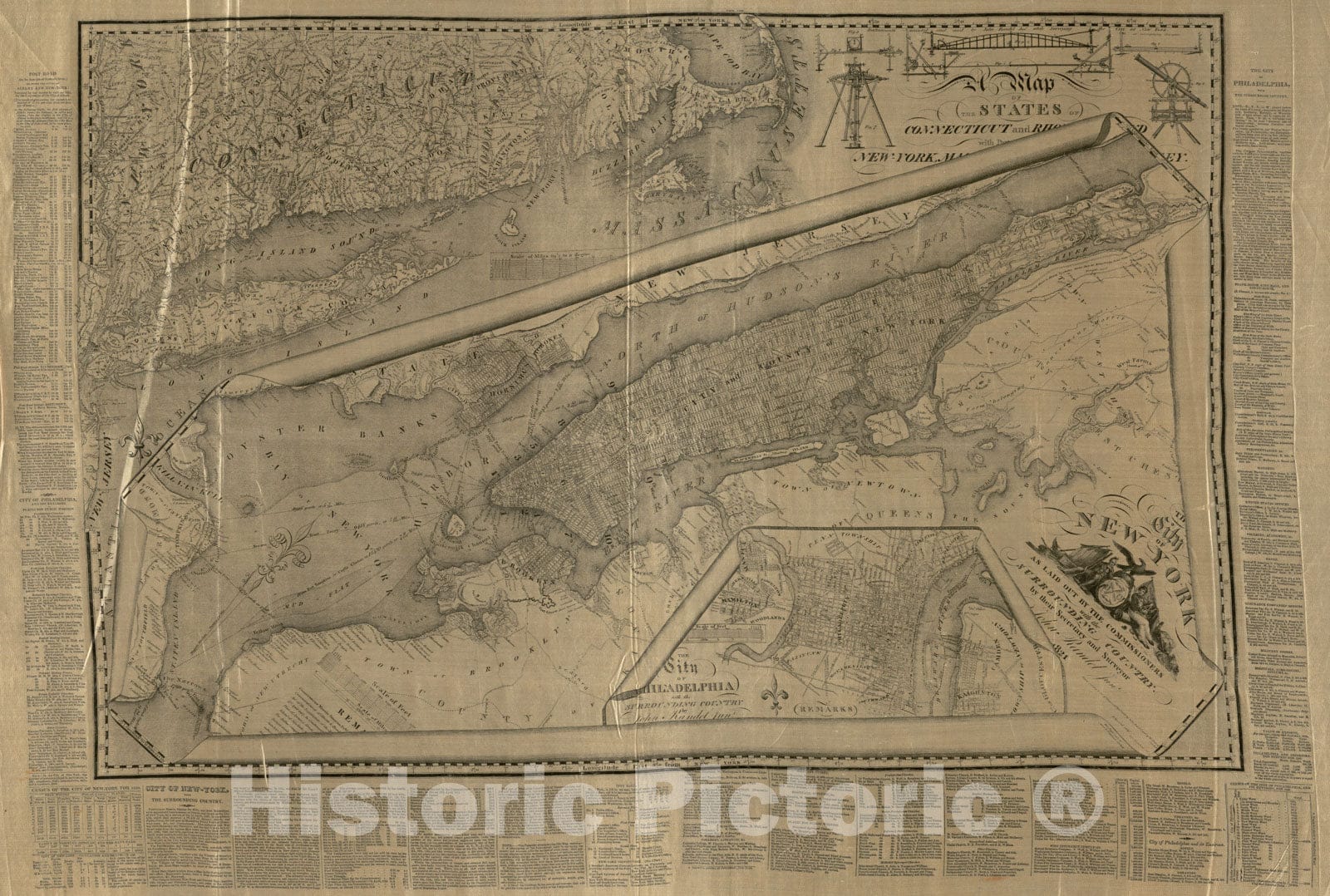 Historical Map, 1821 The City of New York as Laid Out by The Commissioners with The Surrounding Country, Vintage Wall Art