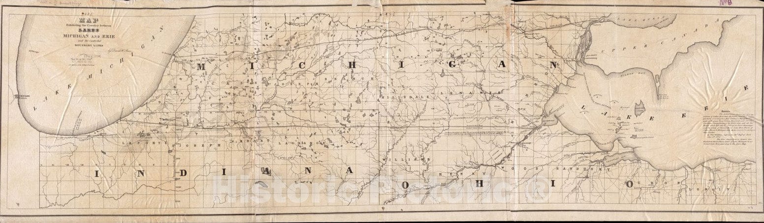 Historical Map, 1835 Map exhibiting the country between Lakes Michigan and Erie, and the contested boundary lines, Vintage Wall Art