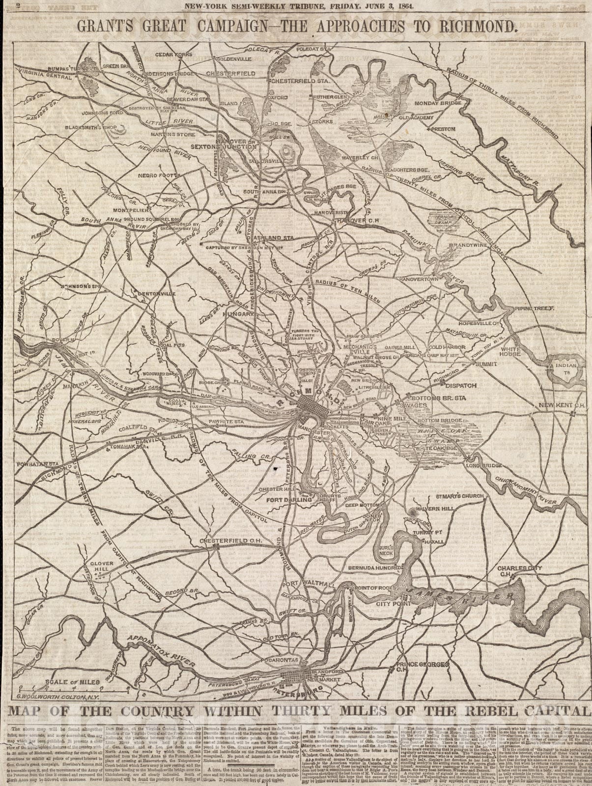 Historical Map, 1864 Map of The Country Within Thirty Miles of The Rebel Capital/G. Woolworth Colton, N.Y, Vintage Wall Art