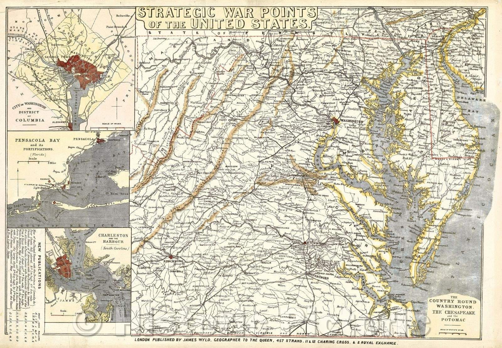 Historic Map : The Country Round Washington The Chesapeake and the Potomac, 1862 , Vintage Wall Art
