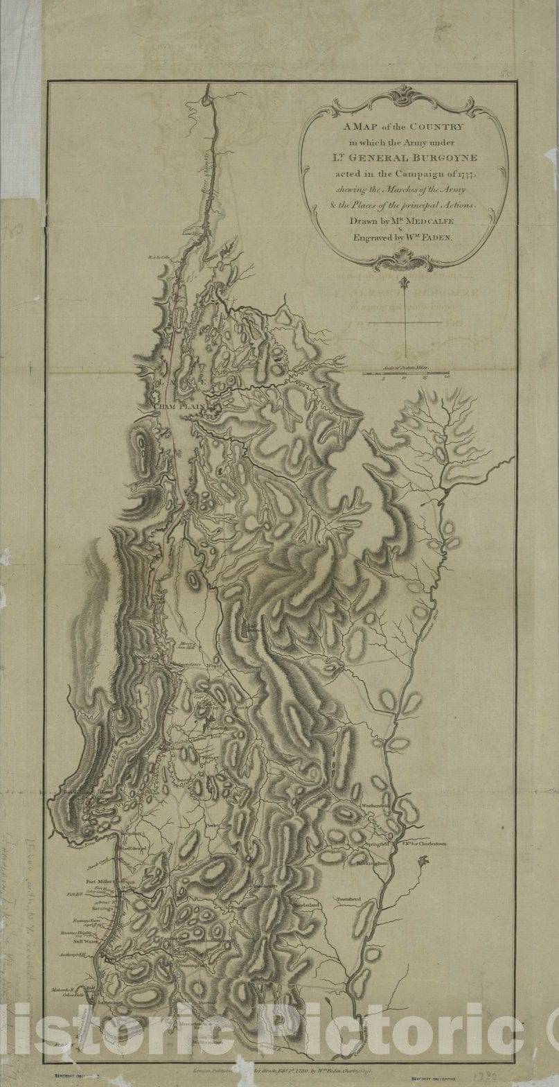 Historical Map, A map of The Country in which The Army Under Lt. General Burgoyne acted in The Campaign of 1777, Vintage Wall Art