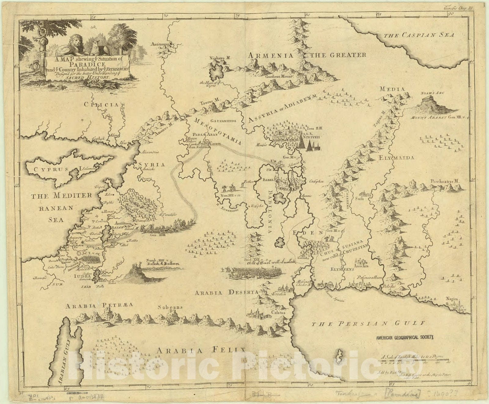 Map : Middle East 1725, A map shewing ye situation of Paradice and ye country inhabited by ye patriarchs : design'd for the better understanding ye sacred history