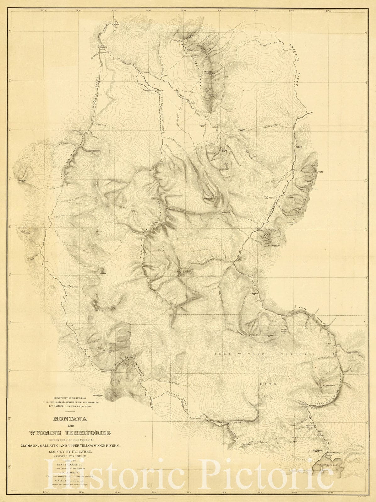 Montana and Wyoming Territories : embracing most of the country drained by the Madison, Gallatin and Upper Yellowstone Rivers. / Geology by F.V. Hayden ; assisted by A.C. Reale ; Drawn by Henry Gannett, from notes and sketches by Adolf Burck
