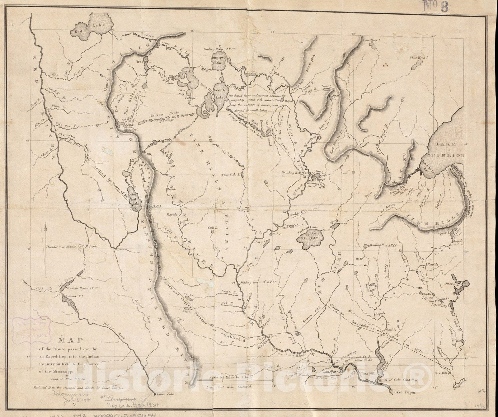 • Historical Map, Map of the route passed over by an expedition into the Indian country in 1832 to the source of the Mississippi, Vintage Wall Art