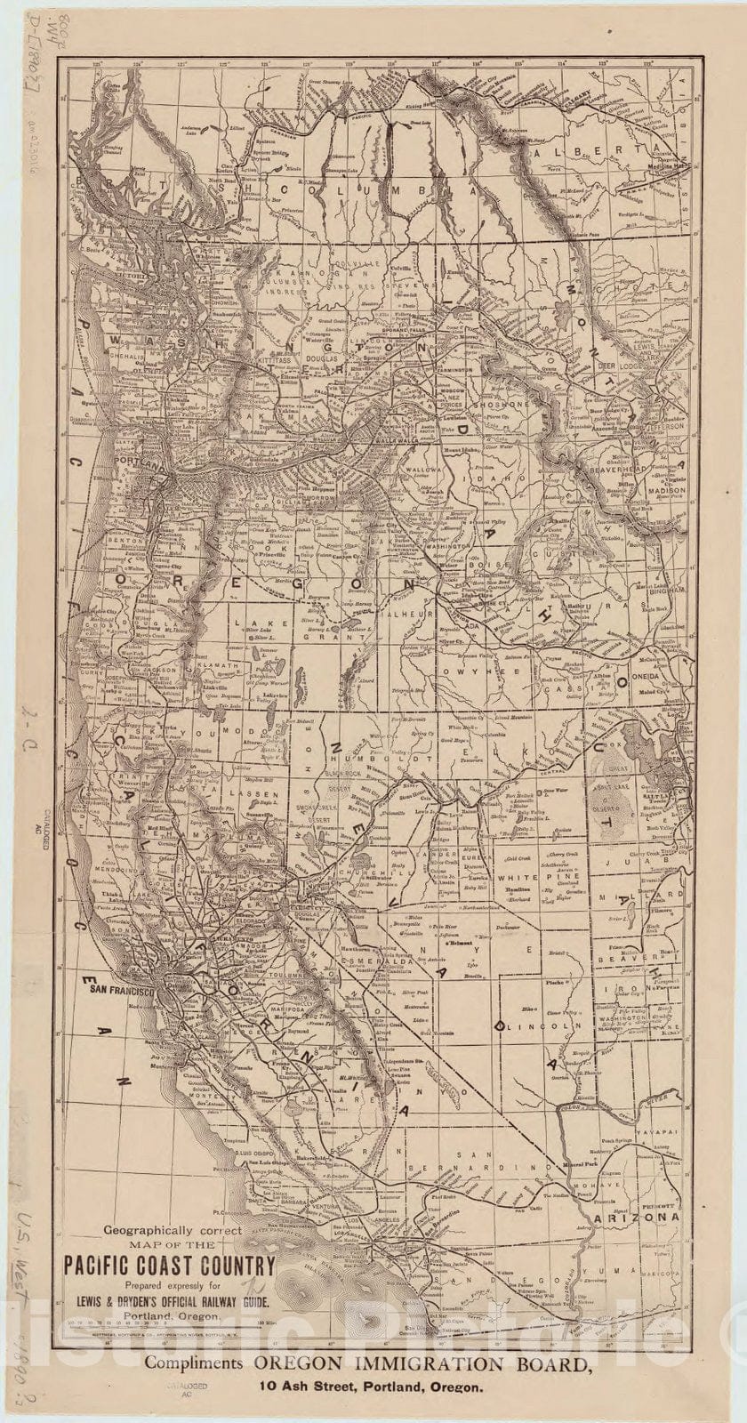 Geographically correct map of the Pacific coast country / made expressly for Lewis & Dryden's official railway guide
