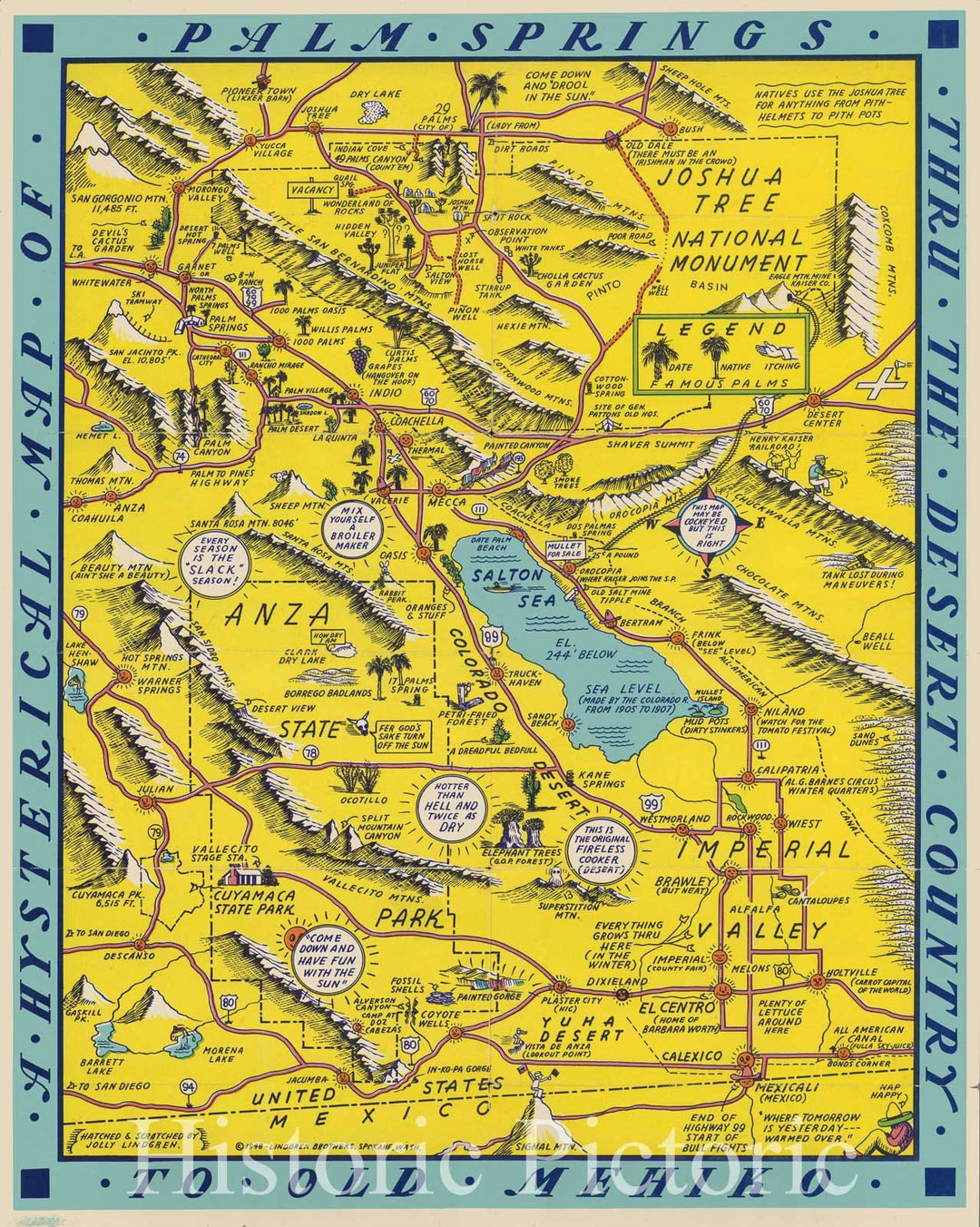 Historic Map - A Hysterical Map Of Palm Springs Thru The Desert Country To Old Mehiko, 1948, Lindgren Brothers - Vintage Wall Art