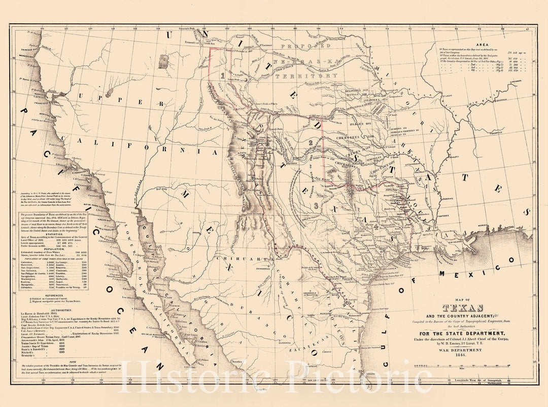Historical Map, 1844 Map of Texas and The Country Adjacent, Vintage Wall Art