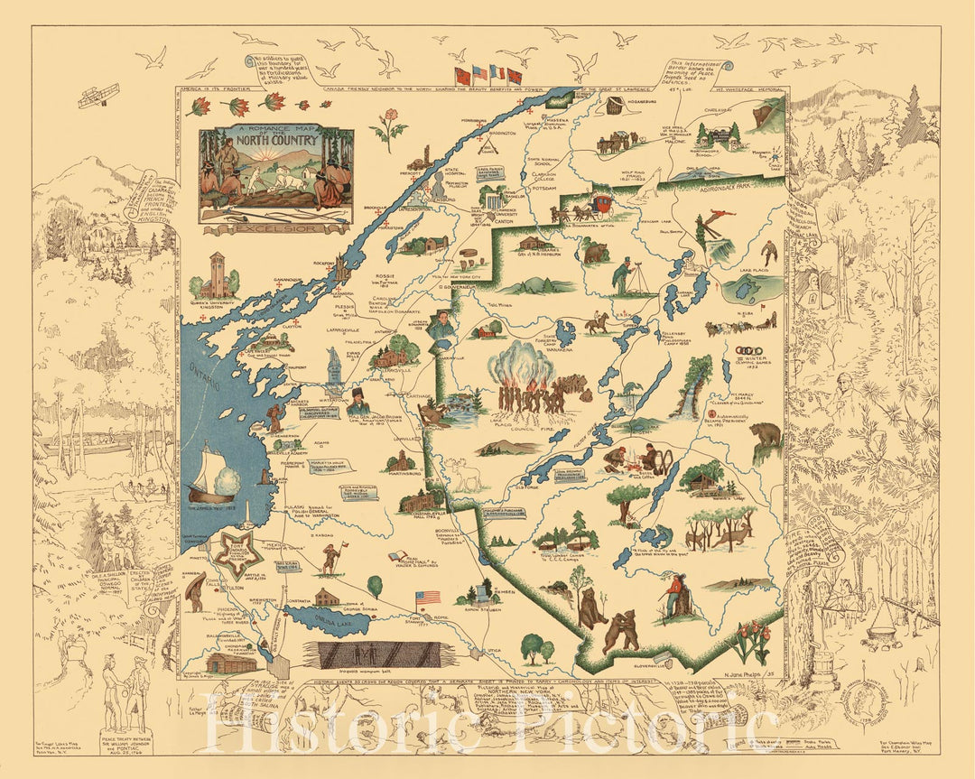 Historic Map : Romance Map of the North Country, 1935 - Vintage Wall Art