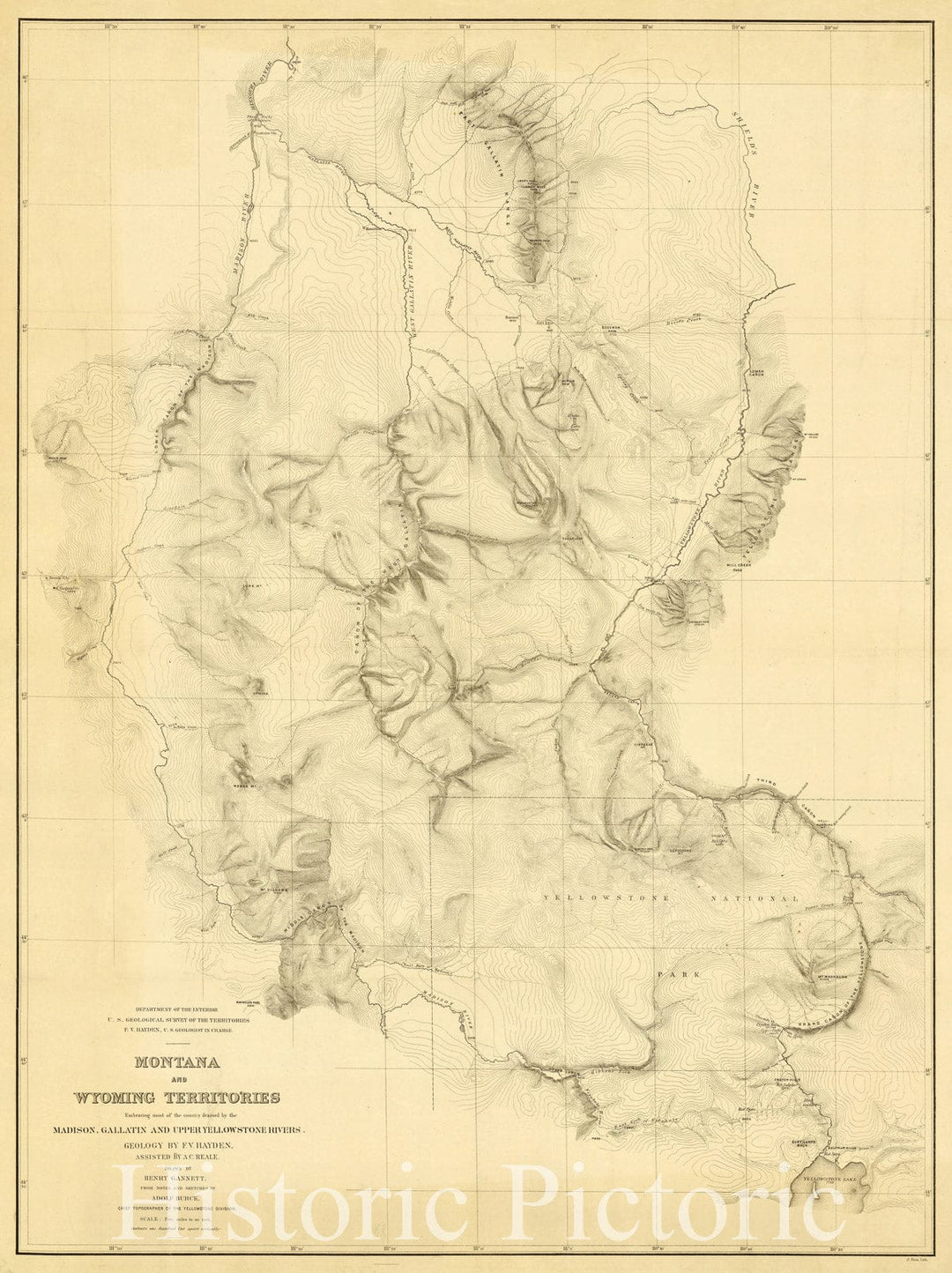 Map : Montana and Wyoming 1872, Montana and Wyoming Territories : embracing most of the country drained by the Madison, Gallatin and Upper Yellowstone Rivers