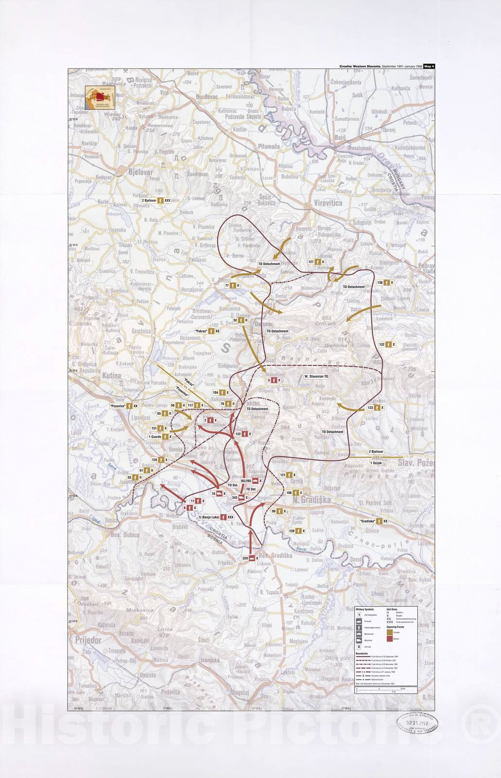 • Historic 2002 Map - Balkan battlegrounds - Croatia: Western Slavonia. September 1991-January 1992