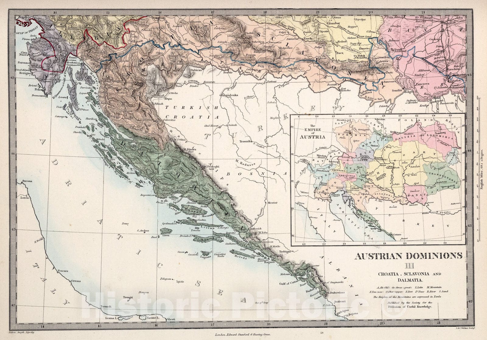• .Historic Map : Austrian Dominions III. Croatia, Sclavonia, and Dalmatia. (inset) The Empire of Austria., 1865, Vintage Wall Art