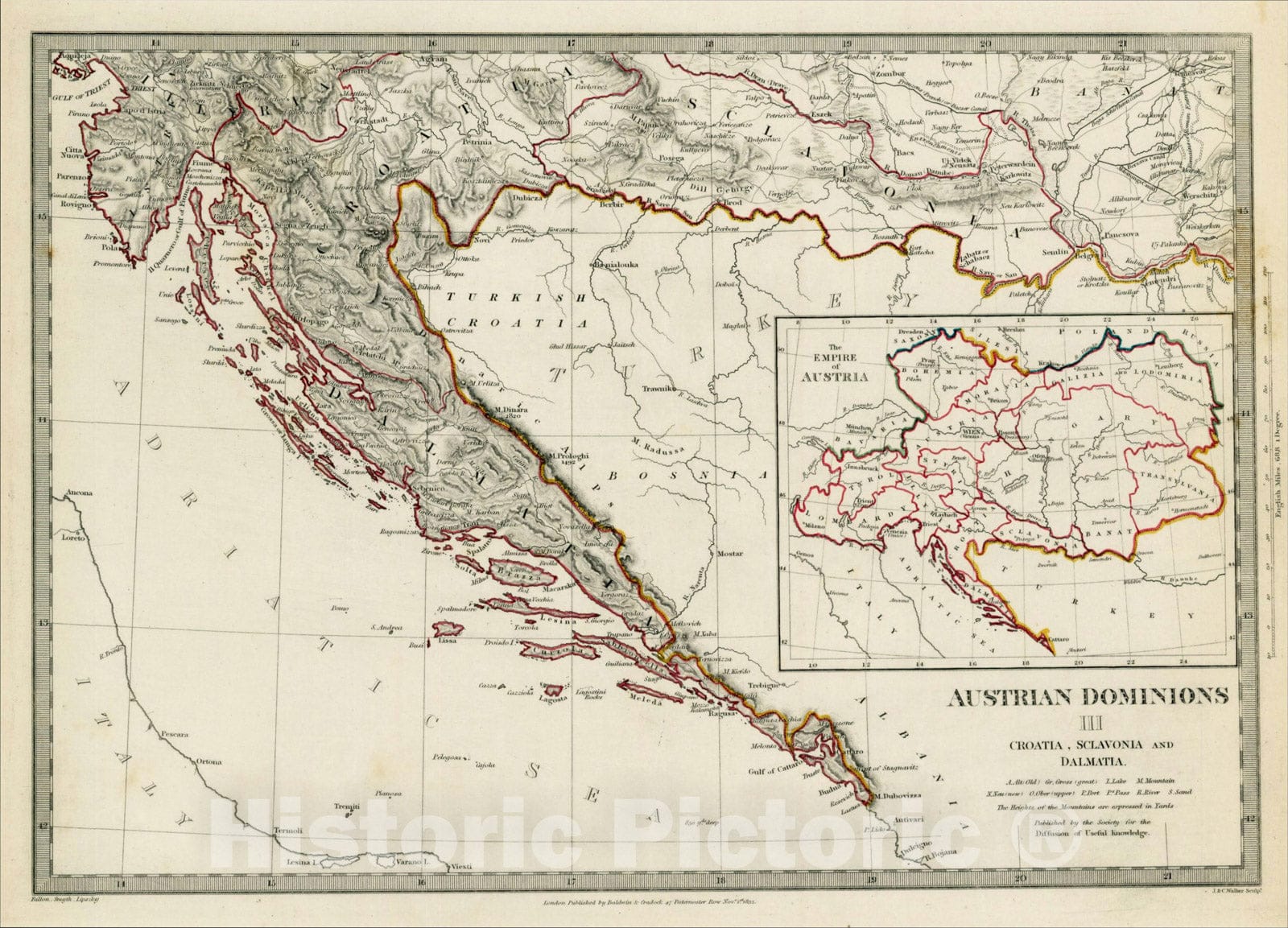 Historic Map : Austrian Dominions III. Croatia, Sclavonia and Dalmatia, 1832, SDUK, Vintage Wall Art