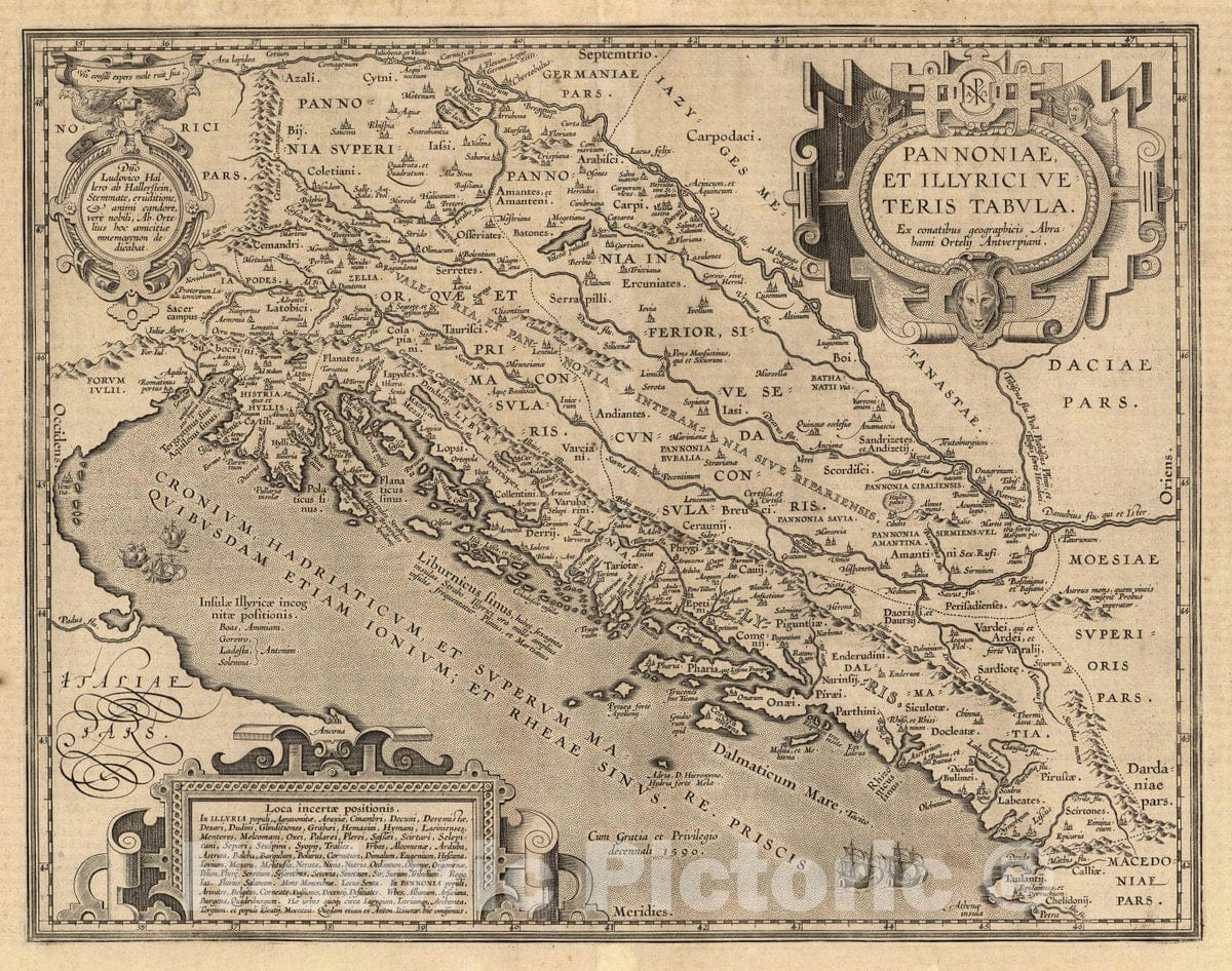 Historic Map : Croatia, Dalmatian Coast (XIX) Pannoniae, Et Illyrici Veteris Tabula, 1590 Atlas , Vintage Wall Art
