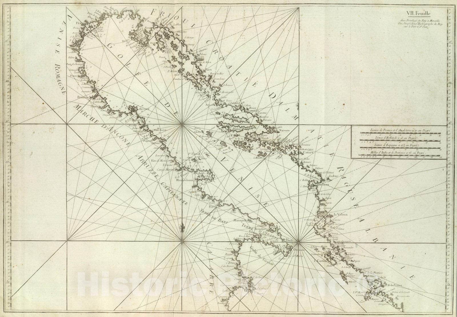 Historic Map : Croatia; Italy, Adriatic Sea 1764 Carte De La Mer Mediterranee. VII. , Vintage Wall Art
