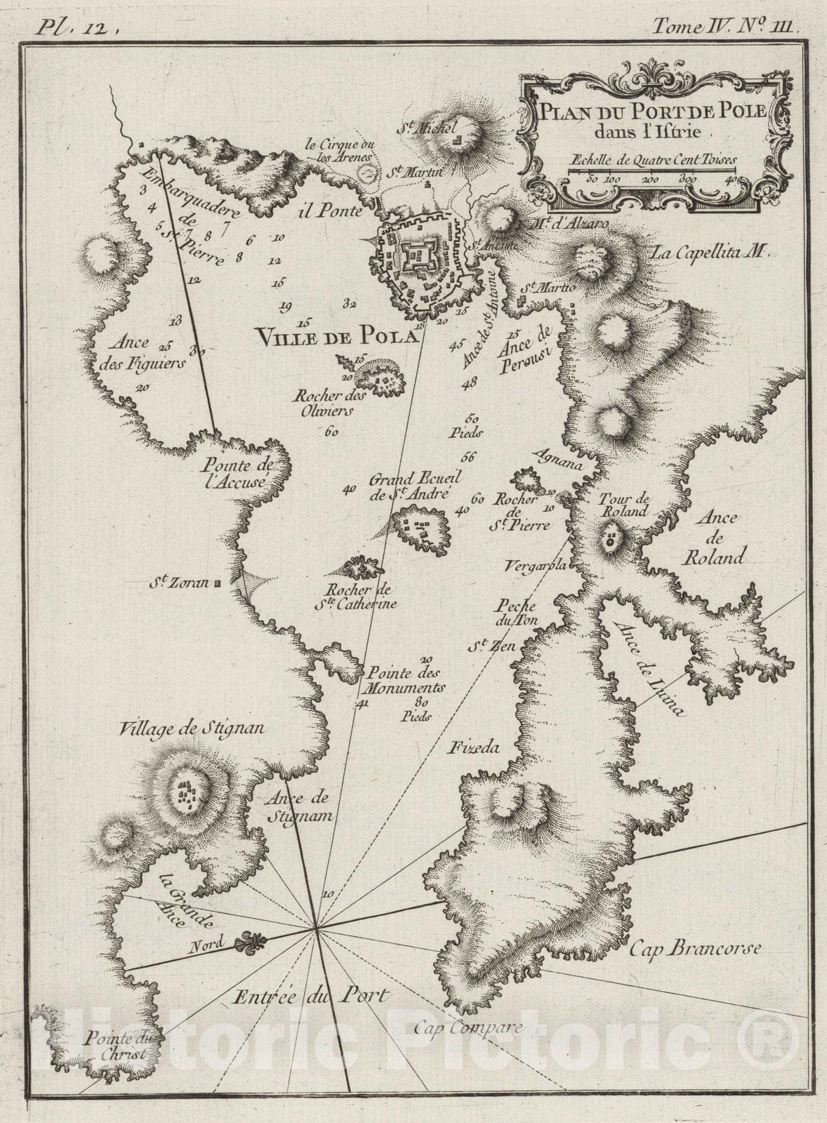 Historic Map : Croatia , Pula (Croatia), 1764 Plan du port de Pole dans I'lstrie. , Vintage Wall Art