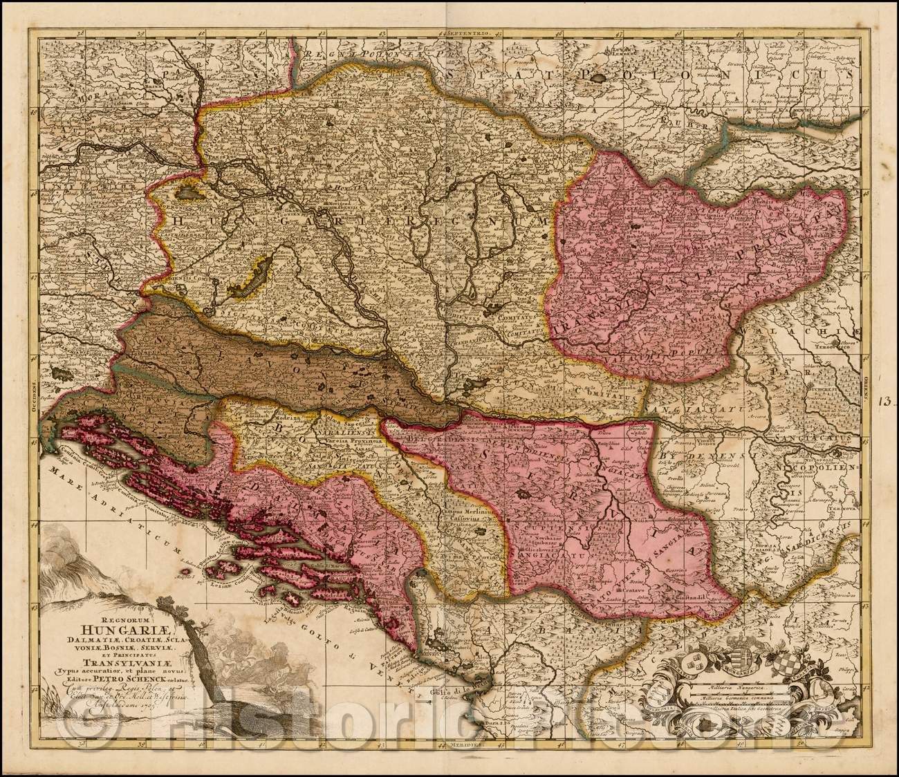 Historic Map - Regnorum Hungariae, Dalmatiae, Croatiae, Serviae et Principatus Transylvan, 1705 - Vintage Wall Art
