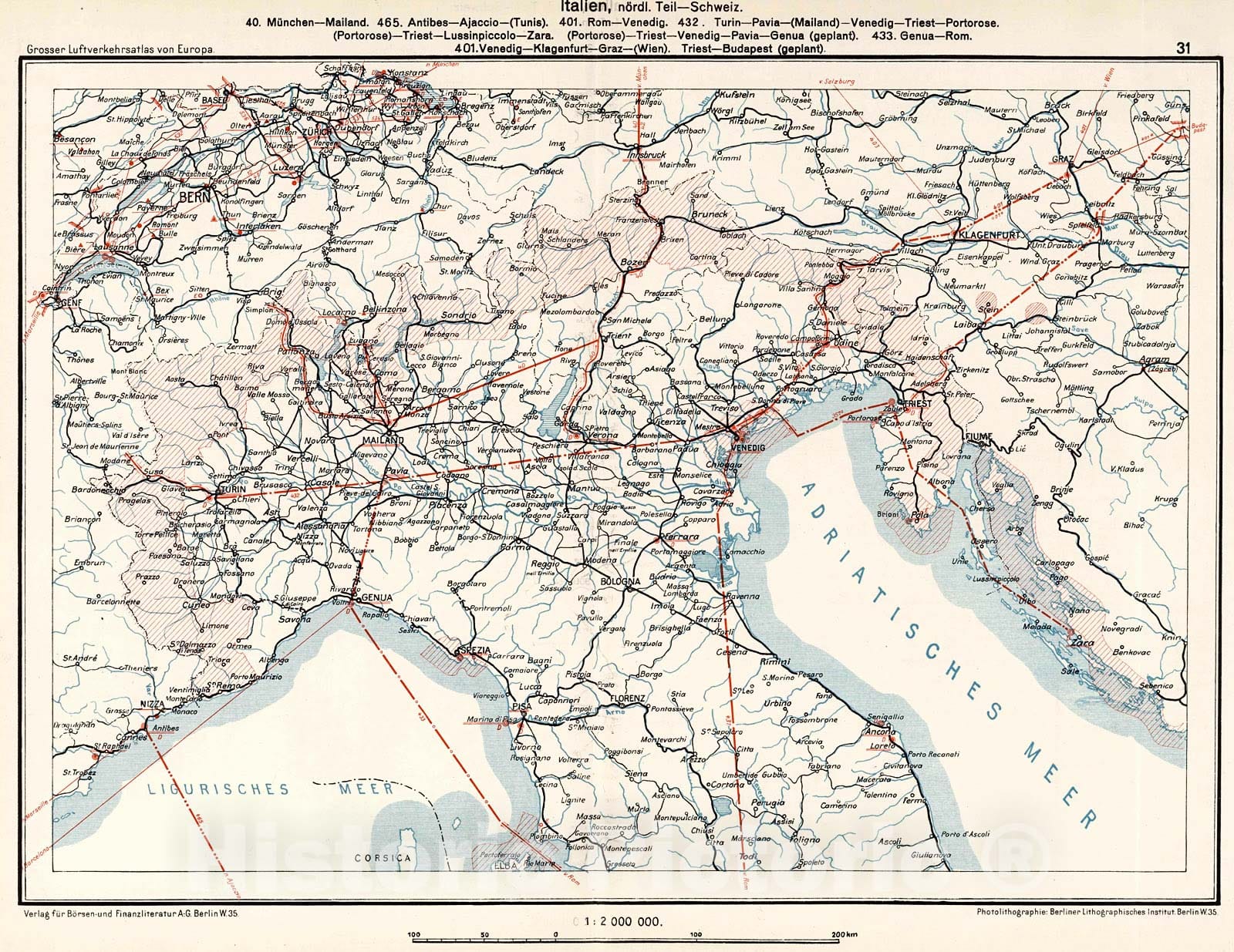 Historic Map : (Switzerland - Italy - Slovania - Croatia Airline Routes)., 1928, Vintage Wall Decor