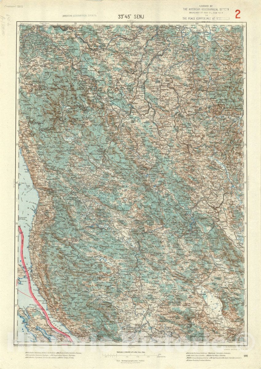 Map : Senj, Croatia 1915 1, Generalkarte von Mitteleuropa, Antique Vintage Reproduction