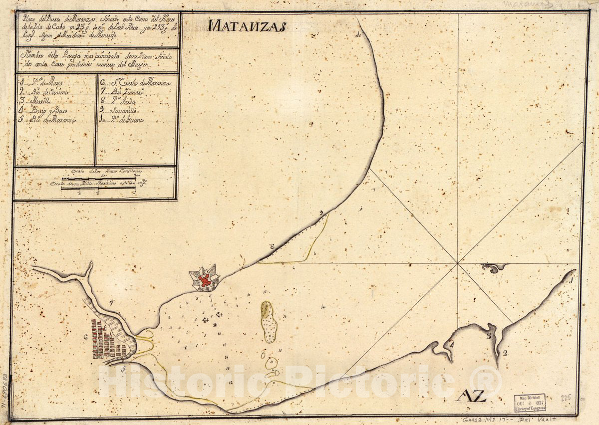Historic 1700 Map - Plano del Puerto de Matanzas situado en la Costa del Norte de la ysla de Cuba