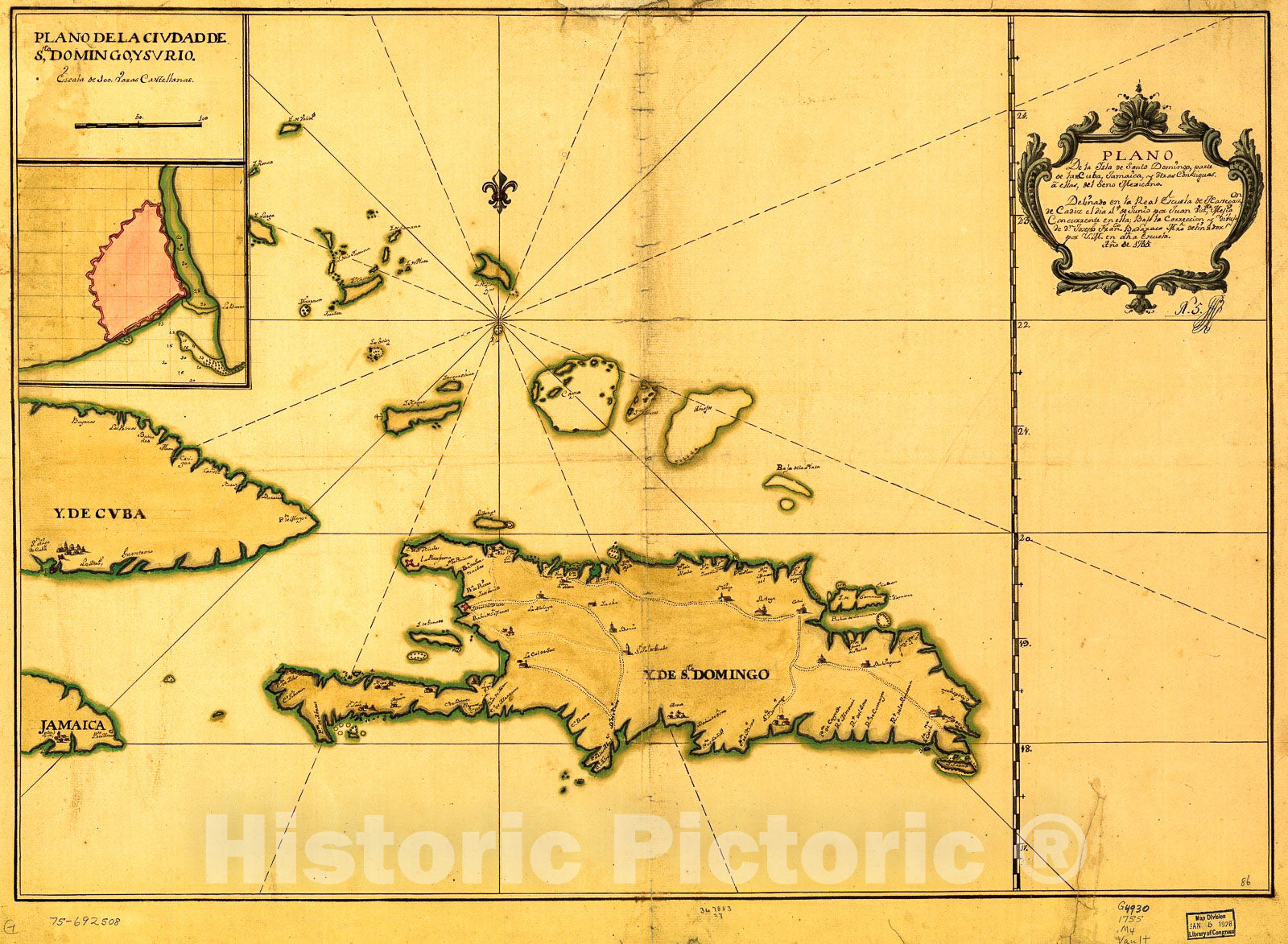 Historic 1755 Map - Plano de la Ysla de Santo Domingo, Parte de las Cuba, Jamaica y otras contiguas a ellas, del seno Mexicano.