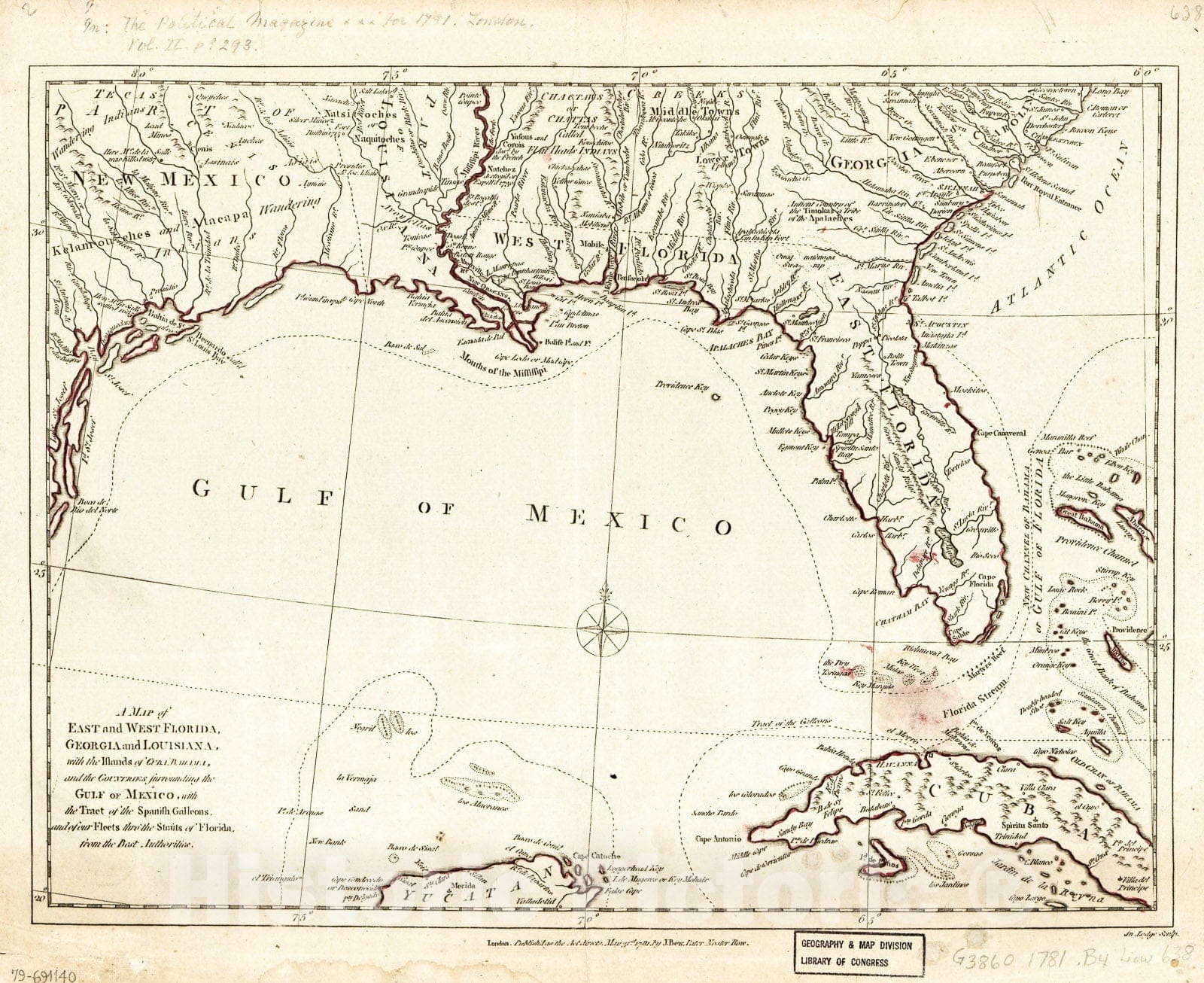 Historic 1781 Map - A map of East and West Florida, Georgia, and Louisiana : with The Islands of Cuba, Bahama, and The Countries Surrounding The Gulf of Mexico 1