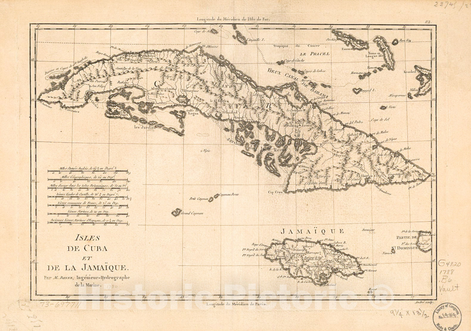 Historic 1788 Map - Isles de Cuba et de la Jamaïque.