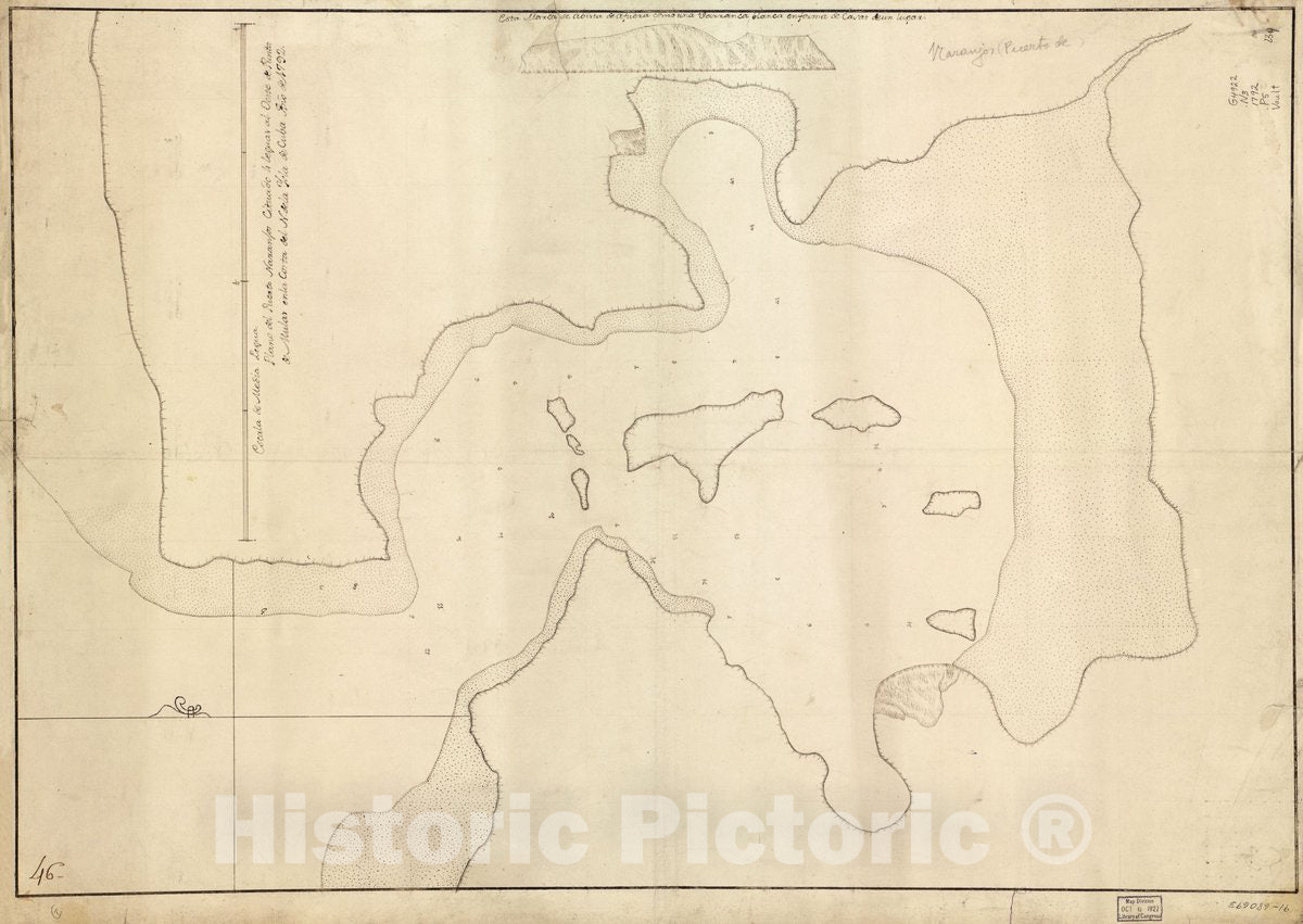 Historic 1792 Map - Plano del Puerto Naranjos cituado 4 leguas al oeste de Punta de Mulas en la Costa del N. de la ysla de Cuba