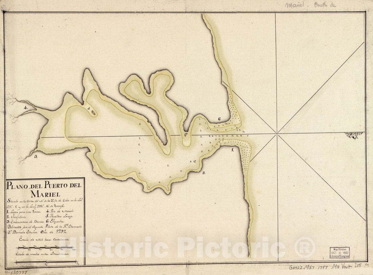 Historic 1797 Map - Plano del Puerto del Mariel situado en la Costa del N. de la ysla de Cuba en la latd. 235 y en la longd. 29316 de Tenerife