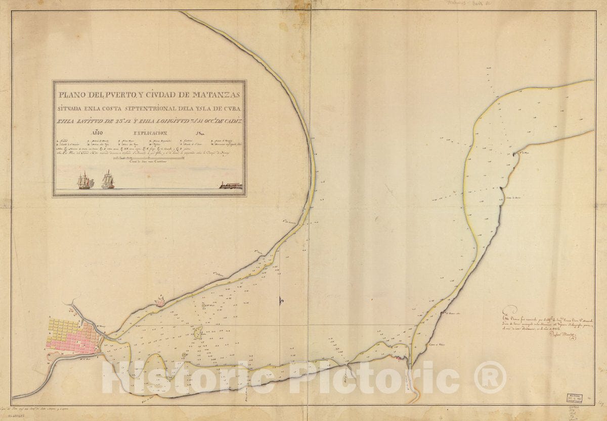 Historic 1815 Map - Plano del Puerto y Ciudad de Matanzas situada en la Costa septentrional de la ysla de Cuba en la latitud DE 2312 y en la longitud 75l5 occl. de Cádiz, año 1800