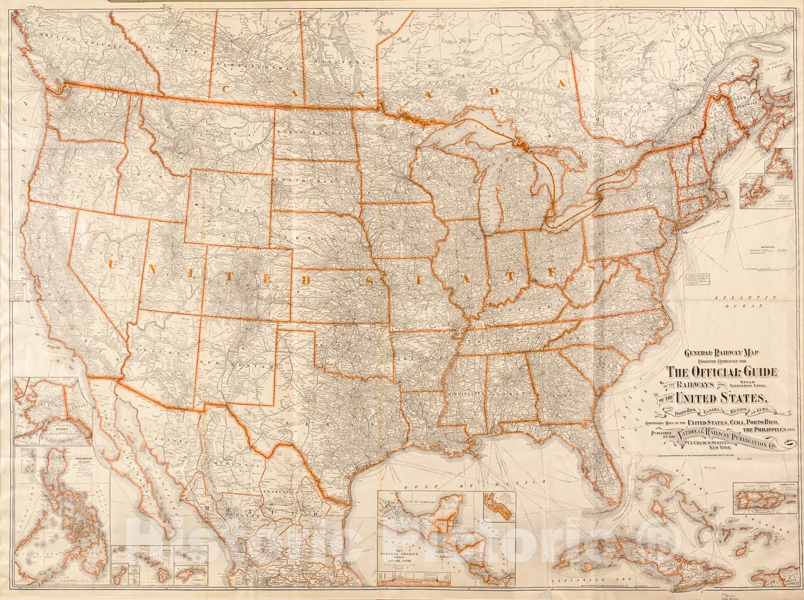 General railway map engraved expressly for the Official guide of the railways and steam navigation lines of the United States, Porto[sic] Rico, Canada, Mexico and Cuba : comprising maps of the United States, Cuba, Porto [sic] Rico.