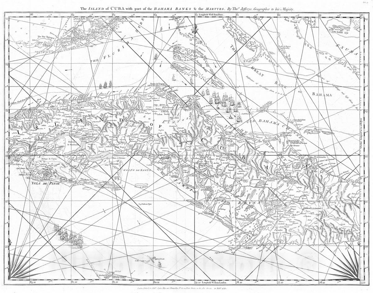 Historic Map : 1775 The Island of Cuba with part of the Bahama Banks & the Martyrs. - Vintage Wall Art
