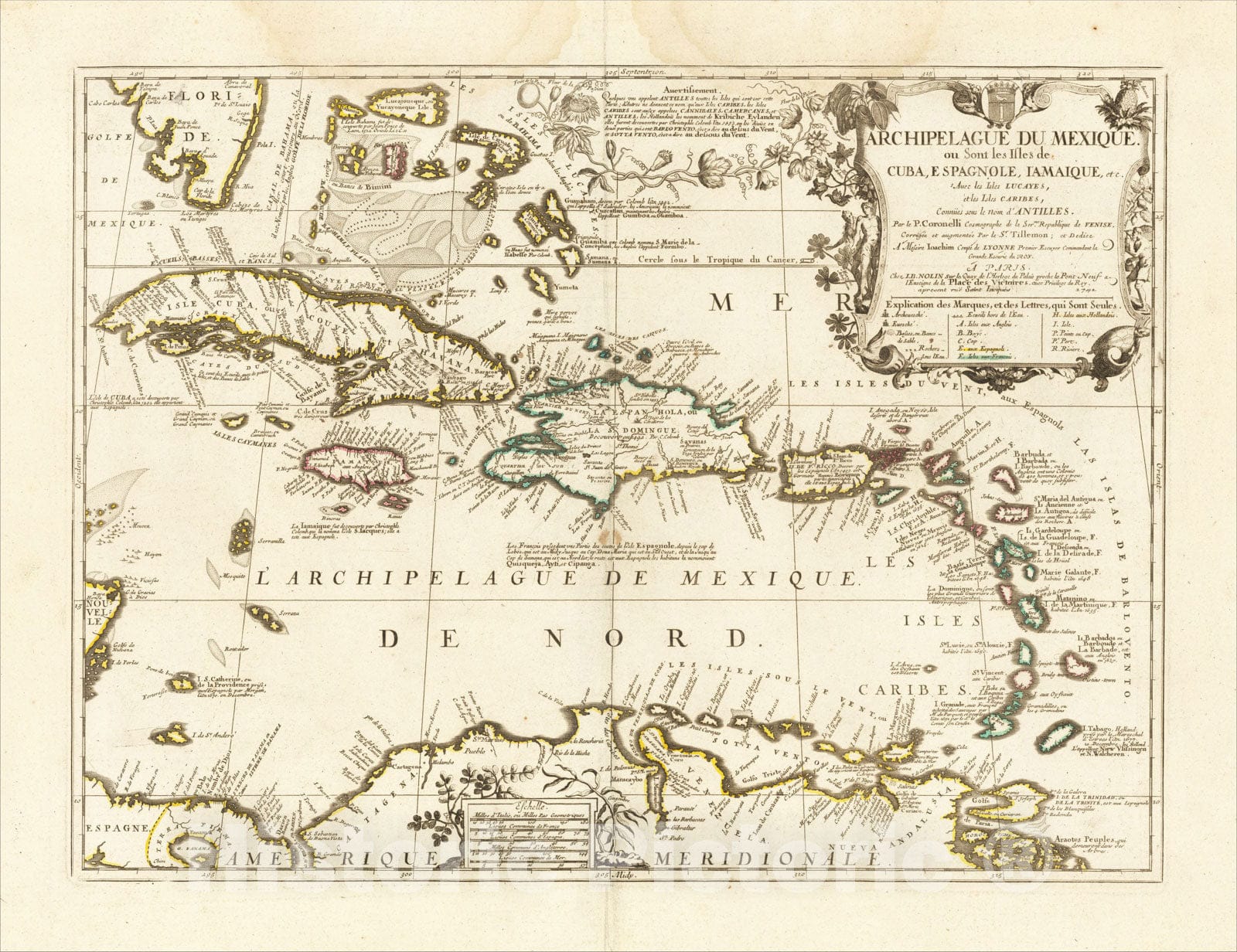 Historic Map : Archipelague Du Mexique. ou Sont les Isles de Cuba, Espagnole, Iamaique, etc., 1688, Vincenzo Maria Coronelli, v2, Vintage Wall Art
