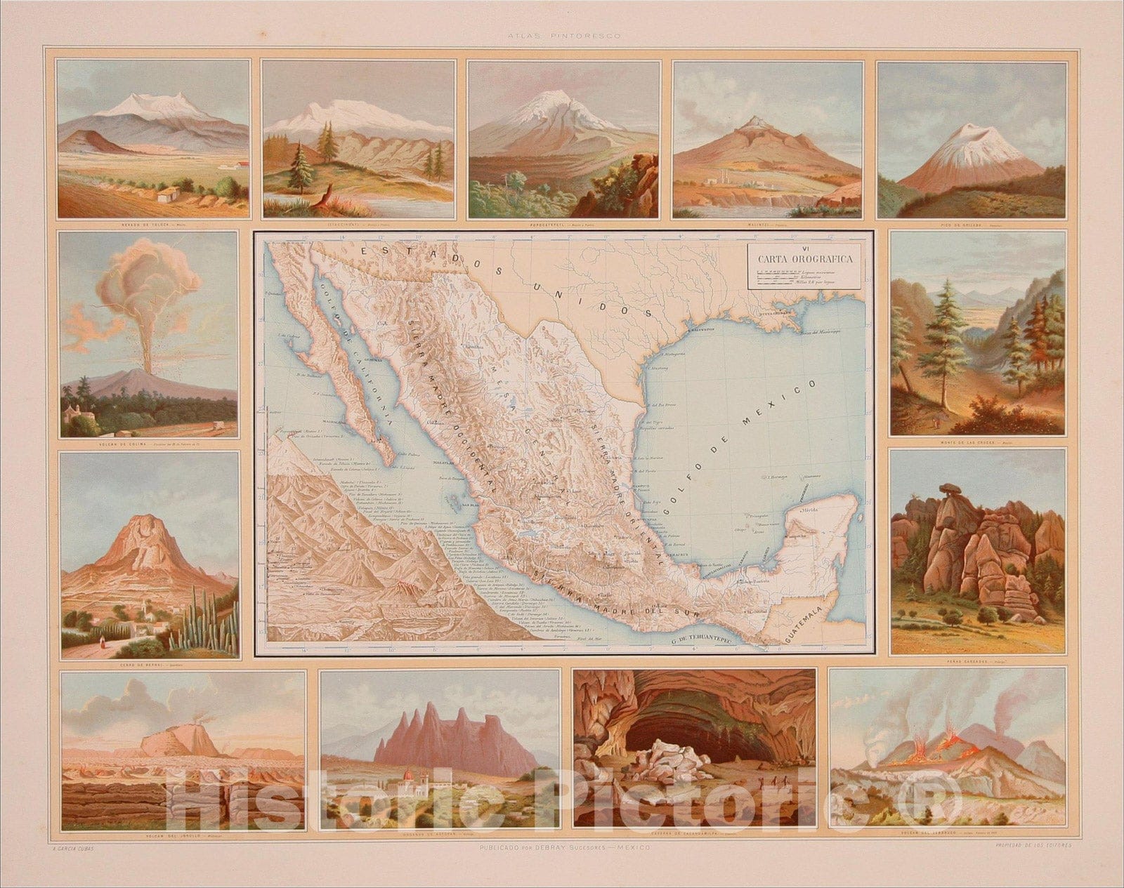 • .Historic Map : Carta Orographica, 1885, Antonio Garcia y Cubas, Vintage Wall Art