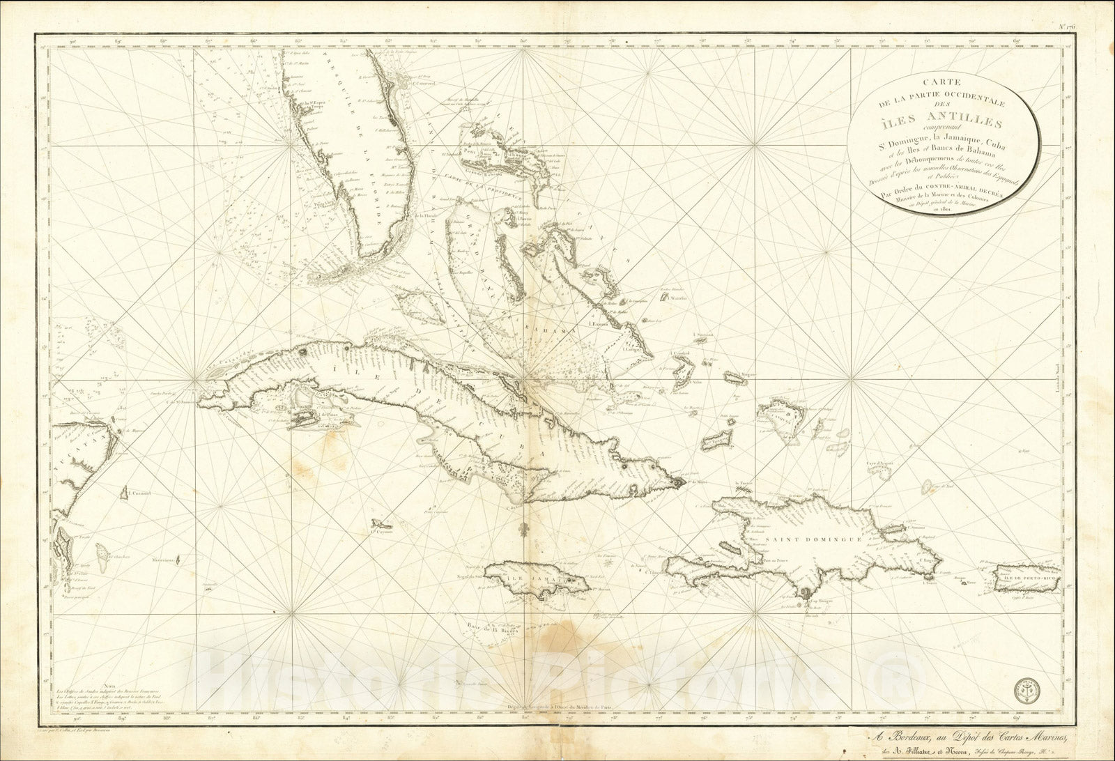 Historic Map : Carte de la Partie Occidentale des Iles Antilles comprenant St. Domingue, la Jamaique, Cuba et les Iles et Bancs de Bahama, 1801, Vintage Wall Art